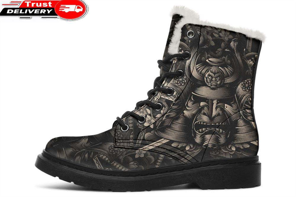 Vintage Kabuto Mask Faux Fur Leather Boots
