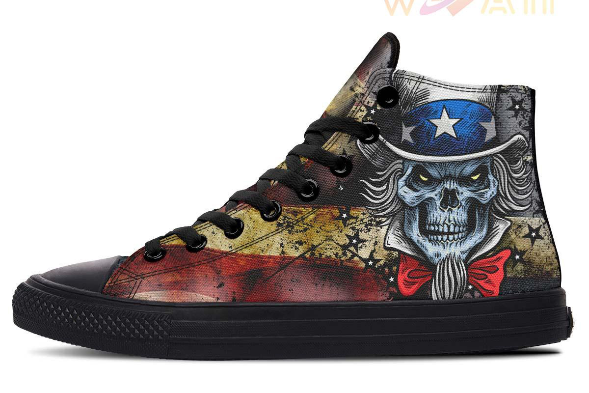 This Vintage Skull And Hat Flag High Top Canvas Shoes was originally designed to be basketball shoes. These women’s and men’s casual shoes have become the go to walking shoes for just about any situation.