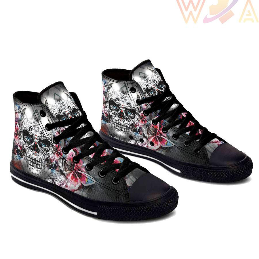 This War Flower Skull High Top Shoes was originally designed to be basketball shoes. These women’s and men’s casual shoes have become the go to walking shoes for just about any situation.