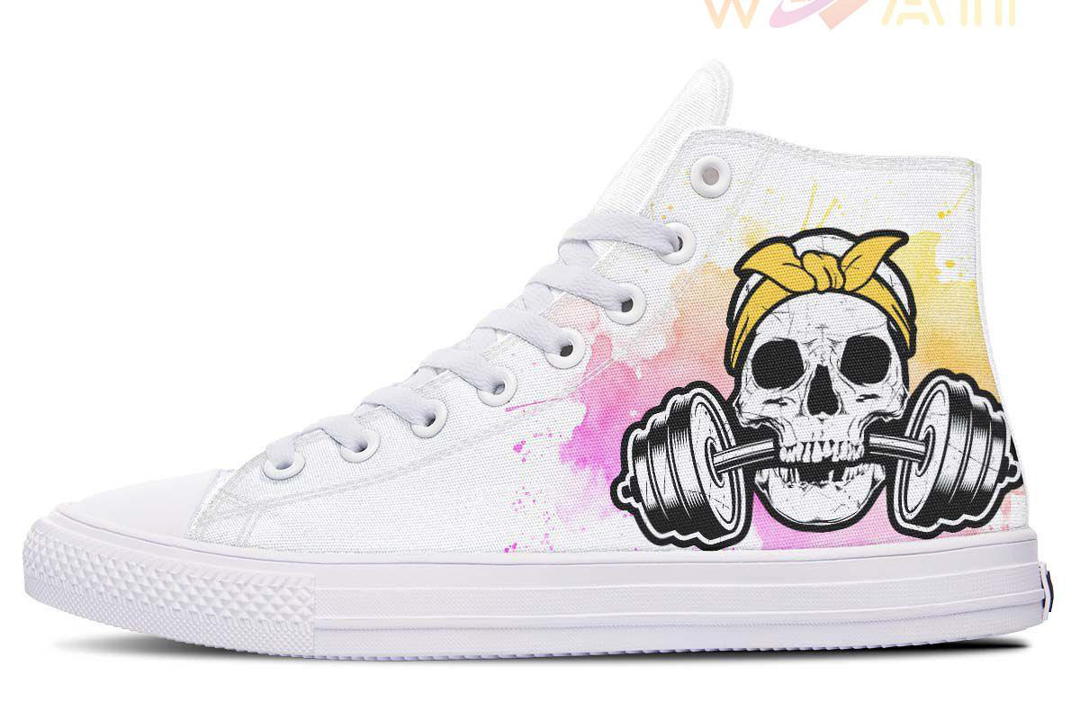Water Color Splat Skull High Top Canvas Shoes
