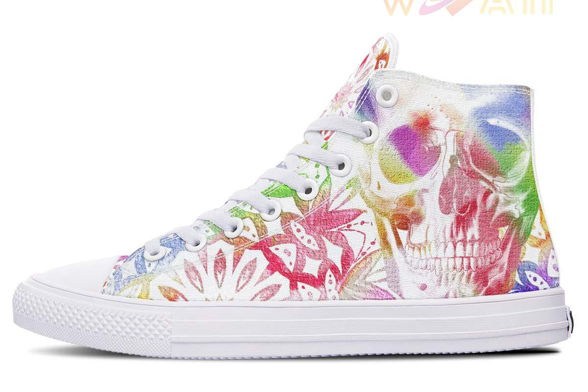 Watercolors Skull Party High Top Canvas Shoes