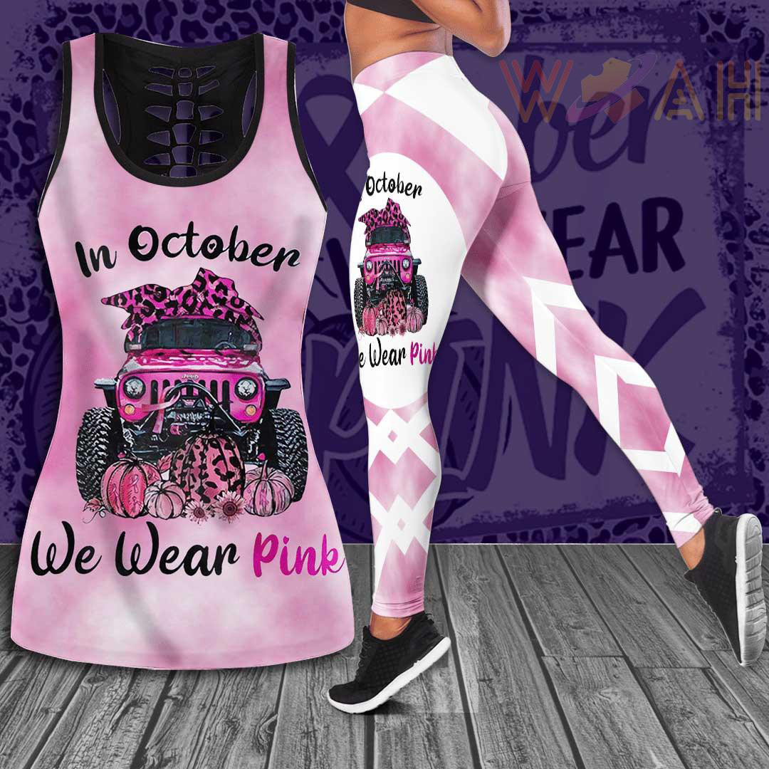 This “We Wear Pink” 3D Hollow Tank Top & Leggings will show your support for Breast Cancer Awareness.