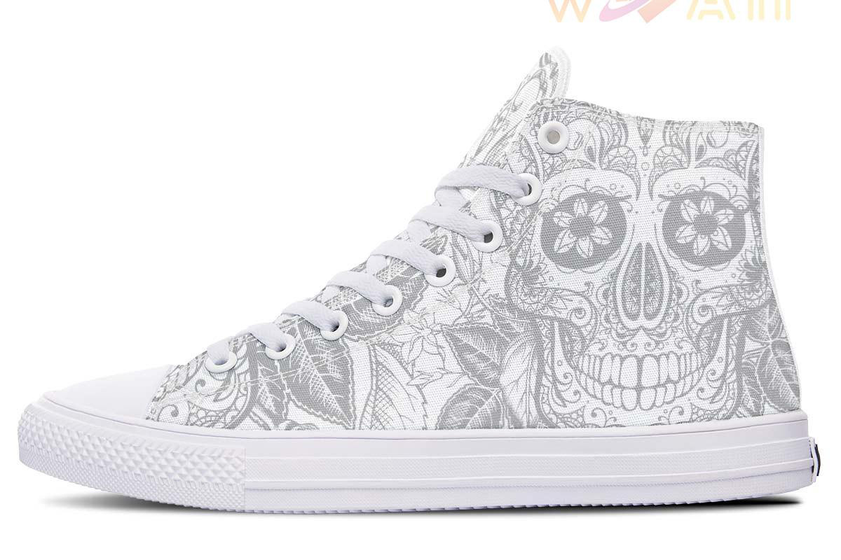 This White Sugar Skull High Top Canvas Shoes was originally designed to be basketball shoes. These women’s and men’s casual shoes have become the go to walking shoes for just about any situation.