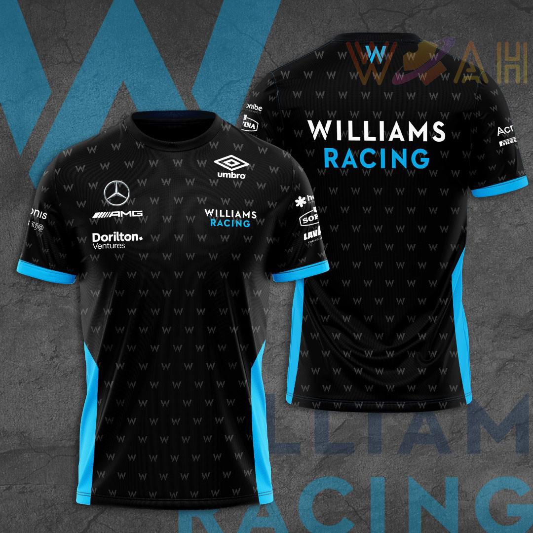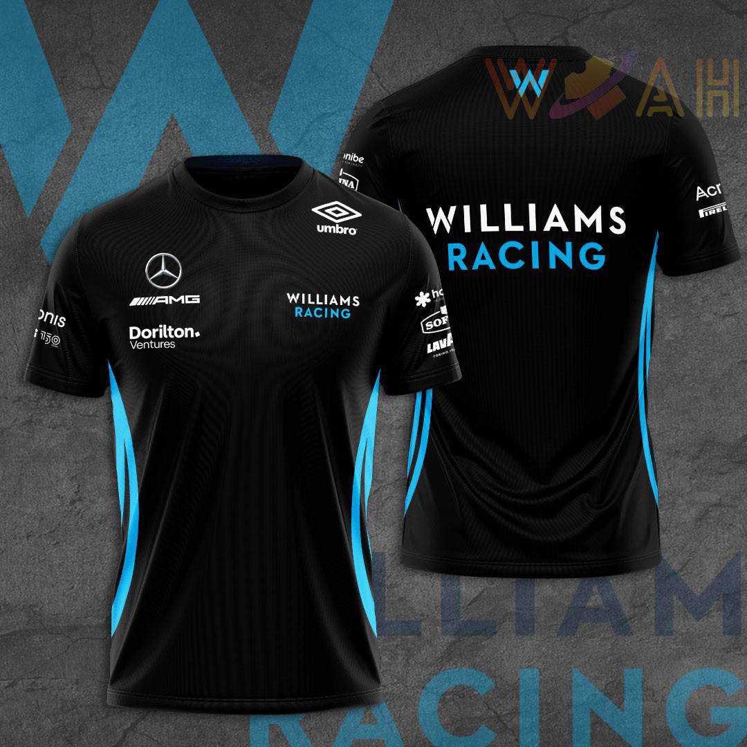 Williams Racing T-shirt size: S, M, L, XL, XXL, 3XL, 4XL, 5XL. Size Selection: Please review the size chart and measuring instructions carefully before placing your order. Unfortunately, we cannot accept returns or issue refunds for size-related issues if the wrong size is chosen.