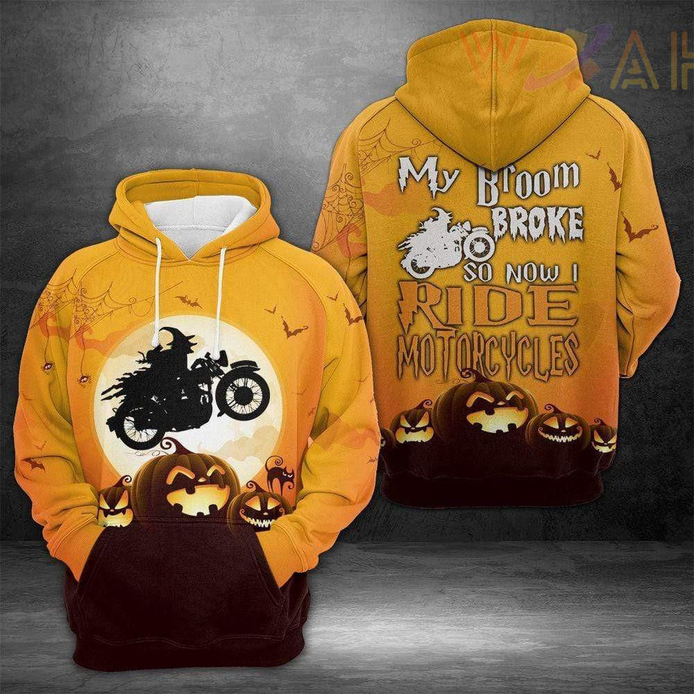 This Witch Laughing Pumpkin My Broom Broke So I Ride Motorcycles 3d Hoodie will be a perfect gift for your loved ones and friends.