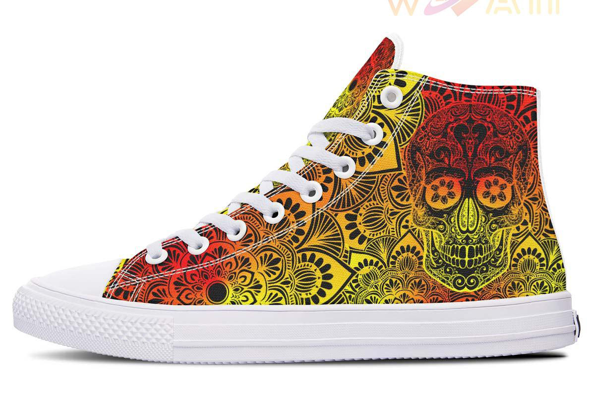 Yellow And Orange Color Merge Skull High Top Canvas Shoes