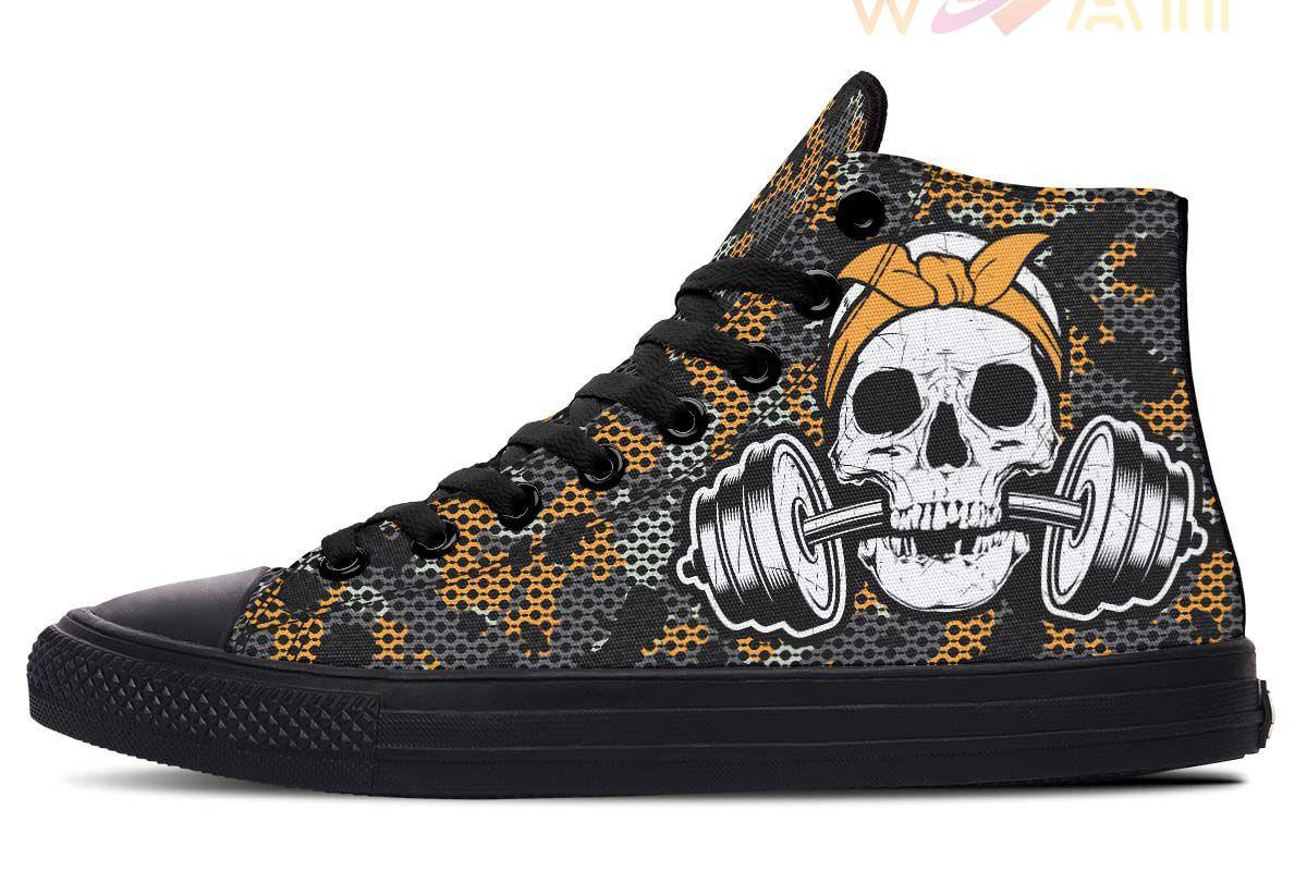 Yellow Black Camo Skull Lift High Top Canvas Shoes