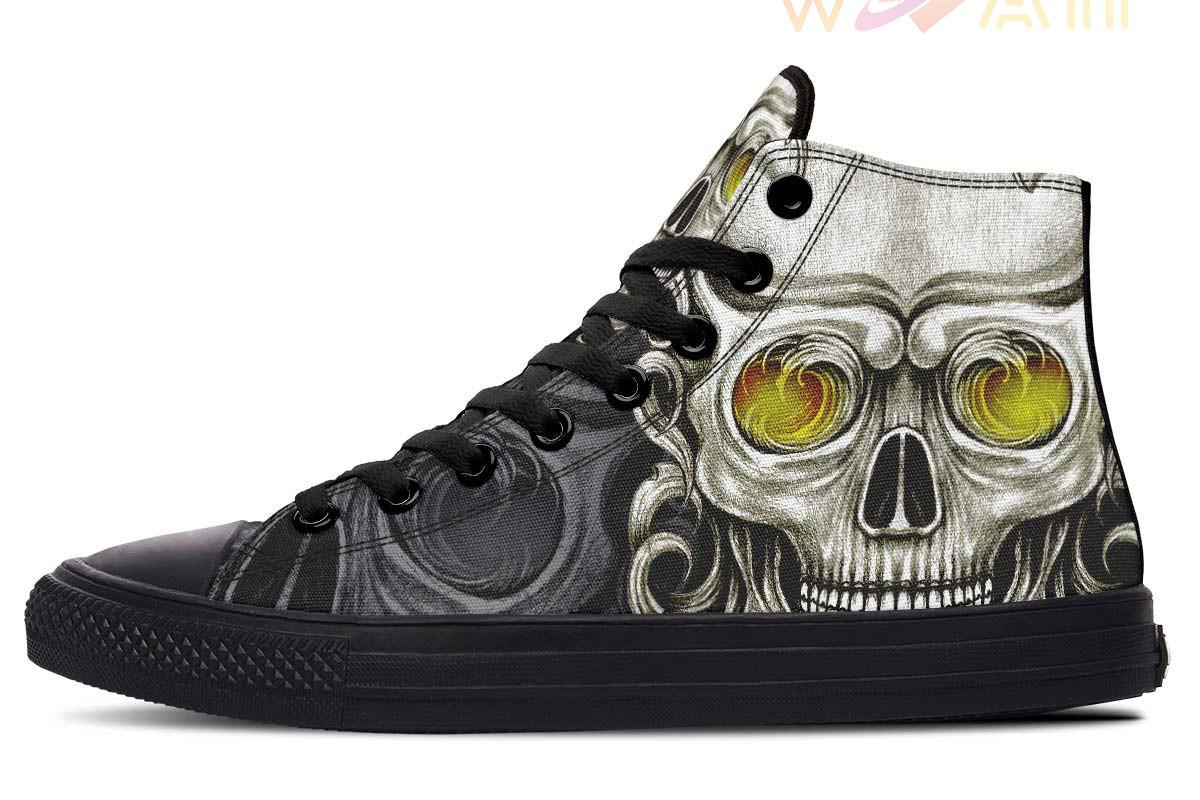 Yellow Eyes Wave Skull High Top Canvas Shoes