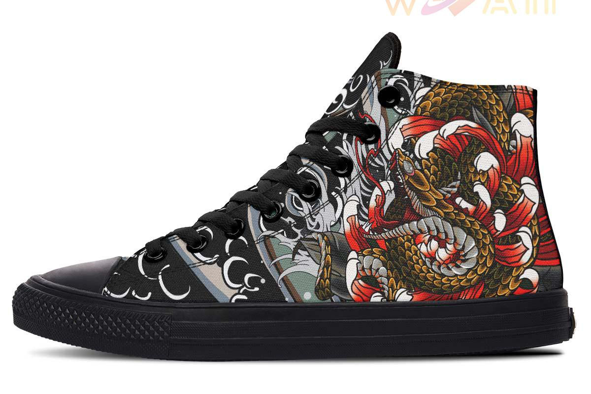 Yellow Snake And Red Flowers High Top Canvas Shoes
